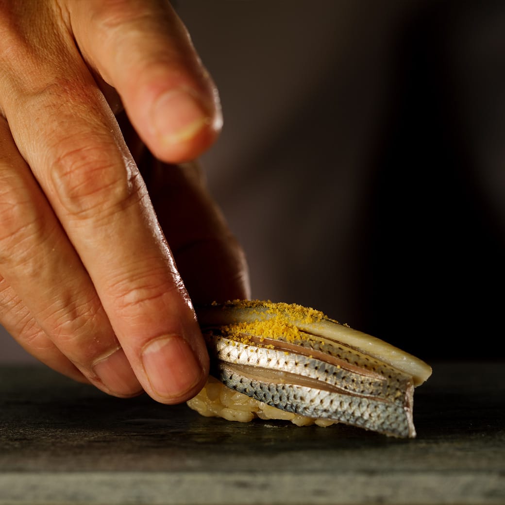 職人が魚にほどこす丁寧な仕事。 赤酢を合わせた江戸前のシャリ。 想いを込めて握ります。